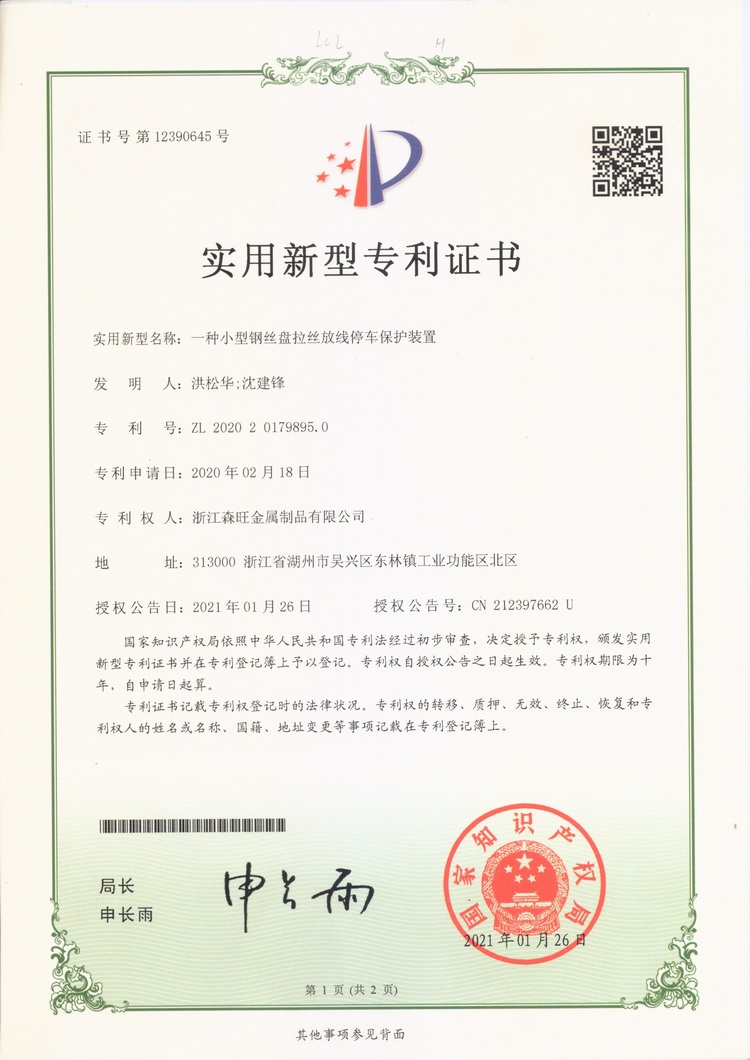 浙江森旺金屬制品有限公司成立于2012年,坐落湖州市吳興區東林鎮工業功能區。公司專業從事各類鍍鋅鋼絲、鋼絞線等產品的開發及生產。目前產品已廣泛應用于各類通信光電纜,電力輸送,電氣化鐵路工程,各類堤壩防護及農業溫室等工程領域。公司秉承“追求卓越品質,創建卓著信譽”的經營理念,始終堅持專業化、規?;慕洜I模式。
